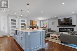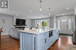 693 Laidlaw Crescent is a beautifully updated back-split on a sought-after, quiet crescent in Kingston's west end, offering the perfect blend of modern style, thoughtful upgrades, and family-friendly living. Designed for today's lifestyle, the open-concept main level is filled with natural light and features pot lighting throughout, along with a sleek electric fireplace that serves as a stunning focal point. The renovated kitchen showcases quartz countertops, crisp white cabinetry, stainless steel appliances, a subway tile backsplash, and a massive centre island with breakfast bar seating - ideal for entertaining or busy family mornings. Upstairs, the space offers three spacious bedrooms and a beautifully renovated five-piece main bathroom featuring double sinks. The fully finished lower level includes a cozy rec room with a natural gas fireplace, an additional bedroom, an updated lower-level bathroom, and a direct walkout to the backyard, providing flexible space for guests or potential in-law suite opportunities. Step outside to your private backyard retreat featuring a fully upgraded in-ground saltwater pool with new liner, steps, surround, lighting, pump, plumbing, and pool shed (2022). A large patio, new wood fencing (2022), and no rear neighbours create a truly turnkey outdoor space designed for summer entertaining. A double-car garage and widened paved driveway provide ample parking. Extensive updates offer peace of mind, including 30-year shingles (2015), a repointed chimney, new windows throughout (2019), and a new front door, sliding door, and yard access door (2024). Located close to parks, schools, shopping, and amenities, this move-in-ready home is ideal for professionals or growing families seeking space, privacy, and long-term value in one of Kingston's most established neighbourhoods. Schedule your viewing today! (id:27)