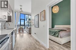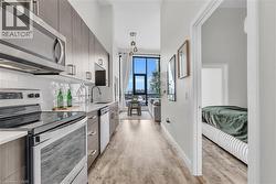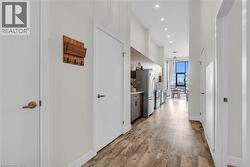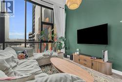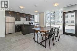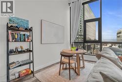 This stunning loft-inspired 900+ sq. ft. condo is an exceptional opportunity for a first-time buyer seeking an elevated urban lifestyle. Thoughtfully designed with wider hallways and a wheelchair-accessible washroom, the unit offers enhanced comfort and ease of movement. Soaring 13-foot ceilings and floor-to-ceiling windows flood the space with natural light, creating a bright and airy atmosphere. Storage is a standout feature, with four closets including a spacious new walk-in closet that adds both functionality and comfort. The location is truly unbeatable—just steps from downtown Kitchener’s vibrant core, where you can enjoy local restaurants, parks, and year-round festivals. Commuting is effortless with quick access to the LRT, GO Train, and the future transit hub. One of the major perks of this unit is the convenience of having the fitness room and theatre room located on the same floor. The building also offers an impressive co-working space featuring multiple private rooms, individual workstations, a kitchen, and a large meeting room—perfect for remote work or collaborative use. For relaxing or entertaining, head up to the rooftop patio with BBQs. An underground parking spot is included, with electric vehicle charging available in the parking garage, adding convenience for EV owners. CONDO FEE COVERS: internet, heating, water, and more, making monthly expenses simple and predictable. This is a fantastic place to call home. (id:27)