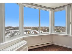 Welcome to 35 Green Valley Dr., Unit 1410 in Kitchener's sought-after Pioneer Park neighbourhood - where convenience and natural beauty come together. This bright corner unit offers over 1,000 sq. ft. of freshly painted living space with new windows framing stunning panoramic views. Inside, you'll find two spacious bedrooms, including a primary suite with a private 2-piece ensuite plus a convenient ensuite laundry and storage area. The open, functional layout provides room to relax or entertain with ease. 35 Green Valley is a well-managed building with outstanding amenities - including a fitness centre, sauna, party room, and more. Enjoy walking trails just steps away, easy access to shopping, and quick connectivity to Highway 401. Experience sweeping views, comfort, and convenience - all in one address.