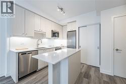 Welcome to Station Park – where modern living meets unmatched convenience in the heart of downtown Kitchener. With $$$$ on upgrades, this 1-bedroom, 1-bath residence comes with underground parking and puts you steps from Google, the School of Pharmacy and Medicine, the future MedTech Hub, CommuniTech, KPMG, and countless restaurants, cafés, and shops. With the LRT and GO Train at your doorstep, the entire city and region are within easy reach. Station Park is known for offering some of the most impressive amenities in the region. From a fitness studio with yoga space, hydrapool and hot tub, to an ice rink, bowling alley, arcade hall, jam room, amphitheater, party room, outdoor work pods, and even on-site dining, retail, and groceries—you’ll never run out of ways to work, play, or unwind right at home. Inside the unit, you’ll find contemporary finishes including stainless steel appliances, quartz countertops, an island with breakfast bar seating, in-suite laundry, and a bright open-concept living space that flows out to your own private balcony. The spacious bedroom features large windows, blackout curtains, and a cheater ensuite for both function and style. Internet is included in the condo fees. Don’t miss the chance to experience a vibrant, connected lifestyle at Station Park—downtown living at its very best. (id:27)