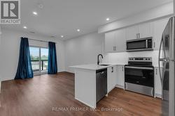 Discover this beautifully maintained, carpet-free unit offering a bright and functional layout with stylish finishes throughout. Featuring durable laminate flooring across the entire home, upgraded doors throughout, six pot lights, lower light switches for added accessibility, and a desirable west-facing view perfect for enjoying spectacular sunsets, this space is ideal for easy living and low maintenance. The contemporary kitchen is thoughtfully designed with upgraded tall cabinetry, sleek quartz countertops, a classic subway tile backsplash, matte black fixtures, and undermount lighting-perfect for both everyday cooking and entertaining. The spacious bathroom boasts an oversized vanity countertop, providing ample space and storage, while the bedroom offers a generous closet with wide double doors for added convenience and organization. Enjoy abundant natural light and seamless indoor-outdoor living with access to a private balcony, an inviting space to relax, unwind, and take in beautiful sunset views. On-site amenities include a bike storage room, party room, visitor parking, and a small park. This unit also includes one parking space and one locker located on the second floor for added convenience. Located in a highly desirable and family-friendly neighbourhood, this home is close to parks, walking trails, shopping centres, restaurants, and everyday essentials. Easy access to public transit and major roadways makes commuting simple and efficient. Families will appreciate proximity to well-rated public and Catholic schools, as well as nearby childcare centres and community facilities. This move-in-ready home is perfect for first-time buyers, professionals, or investors looking for quality, comfort, and location. Don't miss this opportunity to own in one of the area's most convenient communities. (id:27)