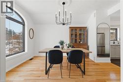Welcome to 523 Forest Hill Dr — a fully renovated, light-filled bungalow nestled on one of the most generous lots in the city, right in the heart of Kitchener’s Forest Hill neighbourhood. With 65x204 ft of property, mature trees, and no rear neighbours, this is a rare opportunity to enjoy privacy, space, and convenience all in one place. Set on a quiet, family-friendly street, this home backs onto one of Kitchener-Waterloo’s top-rated Catholic schools, making it possible for kids to walk to class without crossing a single street. With incredible proximity to more schools, parks, trails, shopping, and cafés, this address offers a connected lifestyle just 5 minutes to downtown Kitchener and 8 minutes to Uptown Waterloo. Commuters will love the easy access to the highway, without the noise. A striking fiberglass front door sets the tone for the elegance inside, opening to a large, open foyer with new tile flooring, warm hardwood accents, and modern light fixtures throughout. This home has been thoughtfully updated, including all-new black-trim windows and doors, brand-new appliances, a refreshed kitchen with stone countertops, and a blend of classic charm and modern style. Vaulted ceilings elevate the dining area, while unique ceiling textures add character. Downstairs, the fully finished basement is bright, spacious, and ready to entertain with a dry bar, cozy gas fireplace, den, and a full 3-piece bathroom, perfect for guests or growing families. A new AC system ensures year-round comfort. With its ideal location, generous lot, upscale updates, and serene setting, 523 Forest Hill Dr offers an unbeatable combination of lifestyle, luxury, and livability in the heart of the city. (id:27)