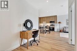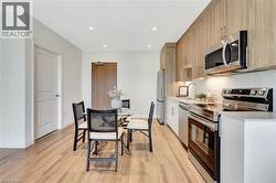 Discover the serenity of Rainbow Lake in this beautifully designed 1-bedroom, 1-bathroom condo at 525 New Dundee Road. Offering 842 sq. ft. of thoughtfully planned living space, this unit perfectly blends modern style with the calming beauty of nature. The open-concept layout connects the kitchen, dining, and living areas, creating an inviting space ideal for relaxing or entertaining. The modern kitchen is equipped with stainless steel appliances and ample cabinetry, making meal preparation effortless. The spacious bedroom includes a convenient closet, with the full bathroom located just steps away. You'll also enjoy the large in-unit storage room and an expansive balcony - a peaceful outdoor retreat with room to unwind. Residents have access to an impressive selection of amenities, including a fitness center, yoga studio with sauna, library, social lounge, party room, and pet wash station. Nestled beside picturesque Rainbow Lake, this location offers direct access to scenic walking trails and tranquil waterfront views. Experience a perfect blend of comfort, convenience, and natural beauty in this exceptional Kitchener condo. (id:27)