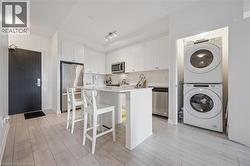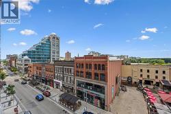 ***Reduced Price to $379,900***Located in the heart of Kitchener Downtown right beside the Kitchener City Hall, live close to all the festivals, restaurants, cafes and all the Kitchener Downtown has to offer. Balcony has a nice view of the patio from the across the street restaurants. Public transit is only steps away from front door way. This 1 bedroom plus den unit offers a nice clean place to live with upgraded kitchen island and other extras including in unit laundry, The 110 sqft balcony offer a nice outdoor space and exemption amenities that make this a great condo building. With dining terrace, roof top track for runs, fitness zone with spin room, outdoor yoga, dog wash station, BBQ space and many more. Make this your next home. (id:27)