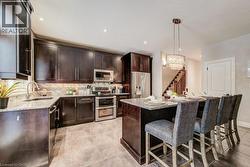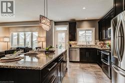 Welcome to 58 Eden Oak Trail, an exceptional family residence where thoughtful design, timeless finishes, and an unbeatable location come together beautifully! This move in ready home is thoughtfully crafted for the way life is truly lived, set in a sought after, family friendly community where neighbours become friends and memories are made.The bright and inviting main floor features 9 foot ceilings, rich hardwood flooring, and a stunning gas fireplace that creates the perfect backdrop for cozy evenings and relaxed gatherings. The seamless open-concept layout offers an effortless flow for both everyday living and entertaining. At the heart of the home, the kitchen brings everyone together, showcasing espresso maple cabinetry, a glass subway tile backsplash, sleek countertops, stainless steel appliances, an oversized island with breakfast bar, and a spacious walk-in pantry. Upstairs, a second family room with vaulted ceilings and oversized windows offers a space perfect for movie nights, a kids’ retreat, or a quiet place to unwind at the end of the day. The primary suite provides a peaceful escape, complete with vaulted ceilings, double closets, and a spa-inspired ensuite designed for rest and relaxation. Upstairs you will also find two additional well-sized bedrooms, a full bath, and the convenience of second floor laundry. The finished basement adds valuable living space ready to grow with your family, ideal for a rec room, home gym, playroom and includes a bathroom rough in for future possibilities. Step outside to your fully fenced backyard, designed for summer barbecues, evening conversations, and lasting memories on the newly installed stone patio. Located just steps from Eden Oak Park and close to excellent schools, scenic walking trails, Chicopee Ski Hill, and convenient Highway 401 access, this is an exceptional opportunity to settle into a truly turnkey home in a community families are proud to call home! (id:27)