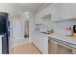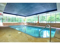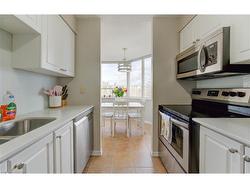 This impressive and highly desirable 2-bedroom, 2-bath corner suite is flooded with natural light from multiple exposures. The thoughtfully designed layout provides excellent separation between the bedrooms, with the primary suite featuring a beautifully updated ensuite and generous closet space. Both bathrooms have been completely modernized. The refreshed kitchen offers new granite counters and a dedicated breakfast nook. A spacious, window-lined living area creates a bright and inviting atmosphere, and the unit is entirely carpet-free. Enjoy the convenience of in-suite laundry, underground parking, and a private storage locker.Residents can take advantage of outstanding building amenities including an indoor pool, hot tub, sauna, and fitness room. Outside, you’ll find a landscaped patio with picnic spots, communal BBQs, and plenty of mature trees. Ideally located close to major highways, shopping, and entertainment!