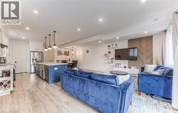 Step into this beautifully crafted, custom-built legal duplex that perfectly blends modernity with thoughtful, functional design and income potential. Built only 3 years ago, this modern stunner spans over 3,100 sq. ft. total space and offers the flexibility to comfortably share space with extended family or benefit from a mortgage helper—while maintaining privacy with separate entrances. The main floor features a bright, open-concept layout anchored by a large island, stainless steel appliances, sleek cabinetry, and a generous walk-in pantry. 9’ ceilings, upgraded 8’ doors, and 8’’ baseboards elevate the living space with a refined finish. Upstairs, you'll find three spacious bedrooms, upper-level laundry, and a large family room that opens onto a glass balcony. The primary bedroom includes a luxurious ensuite with a freestanding bathtub, sauna, and walk-in tiled shower. Outside, the rear yard features a concrete patio and walkway and can easily be subdivided into a fully fenced yard. The lower-level unit which is over 1,000 sq. ft. has an excavated garage for extra space, a separate furnace and ductwork, a large bedroom with oversized windows, a tiled shower, private laundry, and a full kitchen. The party wall has upgraded insulation, Sonopan soundproofing with resilient channel on all levels. Built with intention, high-end finishes, and quality throughout, this home is perfect for families or buyers seeking a smart investment in a family-friendly community—close to highway access, schools, shopping, and parks. (id:27)
