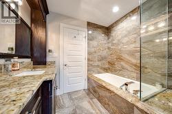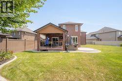 This custom home is loaded with thoughtful upgrades and quality finishes throughout. The full brick and stone construction, the home features 4+1 bedrooms and 3.5 bathrooms, designed for comfort and entertaining. This two-story foyer with elegant hardwood and tile flooring run throughout, with custom touches including double beveled glass French doors, in-ceiling speakers, and a gas fireplace with a grand mantel that anchors the living space. The main level includes a formal dining room (or optional main-floor bedroom), a spacious mudroom with walk-in closet, and a chef-inspired kitchen with granite countertops, large eat-in area, and walkout to a covered deck. Upstairs, the luxurious primary suite includes a spa-like ensuite with an air-jet soaker tub, body and rainfall shower, and a walk-in closet. Three additional generous bedrooms, a full bathroom, and convenient upper-level laundry complete the second floor. The fully finished lower level features an additional bedroom, full bathroom, large family room, and potential for a second kitchen and grade entrance – ideal for extended family or rental suite. Located in one of Lakeshore’s most desirable neighborhoods, you’re just a short walk to parks, movie theaters, coffee shops, and all major shopping. (id:27)