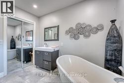 Welcome to this charming ranch-style home in a family-friendly neighbourhood lined with mature trees. This well-kept property offers 3 spacious bedrooms and 2.5 baths, along with a bright main living area perfect for everyday comfort. The finished basement includes a cozy family room with a gas fireplace, ideal for relaxing or entertaining. A bonus separate space at the back of the home is currently used as a hair salon and offers great potential for a home-based business, studio, or additional living area. Step outside to an extra-large backyard featuring an inground pool, hot tub, and a gazebo equipped with a TV and speakers-your own private outdoor retreat. This home combines comfort, convenience, and endless possibilities. (id:27)