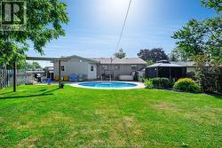 Welcome to this charming ranch-style home in a family-friendly neighbourhood lined with mature trees. This well-kept property offers 3 spacious bedrooms and 2.5 baths, along with a bright main living area perfect for everyday comfort. The finished basement includes a cozy family room with a gas fireplace, ideal for relaxing or entertaining. A bonus separate space at the back of the home is currently used as a hair salon and offers great potential for a home-based business, studio, or additional living area. Step outside to an extra-large backyard featuring an inground pool, hot tub, and a gazebo equipped with a TV and speakers—your own private outdoor retreat. This home combines comfort, convenience, and endless possibilities. Call now to book your private showing. Looking at offers as they come. (id:27)