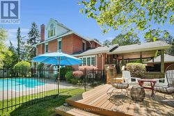 Beautiful Estate sized lot(122ft x 157ft) near Springbank Park, a charming 2.5 storey 4+1 beds, 3 bath home offers timeless charm and exceptional living space in a highly desirable location. Just steps from Thames Valley Golf Course and the pedestrian bridge to Springbank Park, and only a 10-minute drive to downtown London, this property combines serenity with convenience. Inside, you'll find spacious principal rooms with soaring ceilings, abundant natural light from large windows, and rich natural wood trim and doors throughout. The main floor features a cozy family room with a gas fireplace and custom Oak wet bar, perfect for entertaining as well as a convenient laundry room. The kitchen boasts classic Oak cabinetry, a center island with Jenn-Air stove, built-in oven. Upstairs, generous-sized bedrooms provide comfort and privacy, while the third-level loft offers flexible space for a home office, studio, or additional living area. Enjoy the outdoors on the newer covered deck or take a dip in the inviting backyard pool, ideal for relaxing summer days. Windows(2015),New A/C(2022), Pool pump (2025), Basement renovation -1 additional bedroom with full bath(2019), new kitchen faucet(2025), 2nd floor Hallway and stairs (2025) and new dishwasher(2025). This is a rare opportunity to own a well-maintained character home in a premier London location. (id:27)