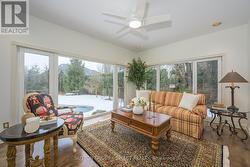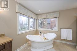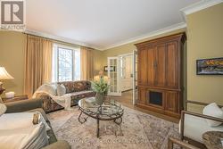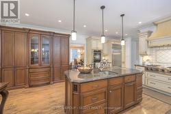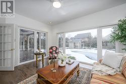 Classic architecture, timeless design, & a rare sense of permanence define this exceptional all-brick residence on prestigious Highland Woods Court. Designed for sanctuary-level privacy w/outstanding proximity to Victoria Hospital, Highland Golf & Country Club, Wortley Village, & downtown London's business centre. A recessed, solid wood double-door entry opens to 2 storey foyer w/ curving staircase &, expansive principal rooms showcasing hardwood floors, crown moulding & rich millwork. Approx 3600 sq. ft a/g (MPAC) + 1200 finished in lower level. The heart of the home is the oversized kitchen featuring extensive custom cabinetry, granite counters, upscale appliances, & a large centre island designed for gathering. Patio doors extend to the covered back terrace-creating seamless indoor-outdoor flow for poolside entertaining. Double French doors lead from the kitchen into an inviting family room anchored by an open-hearth, full-flame gas fireplace. From here, step into the glass-surround sunroom w/ full-height tilt/turn windows & doors overlooking the landscaped gardens, heated pool & cabana w/ 2-piece washroom. Upstairs offers four spacious bedrooms, including an oversized primary suite w/ gas fireplace, an updated 6-piece ensuite w/freestanding soaker tub, seated glass-enclosed shower, skylight, separate water closet, double sink vanity, & custom California closet. The finished lower level adds significant lifestyle space w/ a games room featuring built-ins, media room w/ wet bar, & a dedicated gym & powder room. Outside, the fully fenced yard includes a separately-fenced heated pool, cabana w/ 2-piece bath, irrigation system, flagstone paths, mature trees, layered landscaping, & an oversized covered patio w/ soaring ceiling, lighting, & fans. Bonus 3-car tandem garage w/stairs to lower level completes the offering. Main floor laundry, A property that balances scale, craftsmanship, & location-designed for those who value privacy, family, & enduring quality. (id:27)