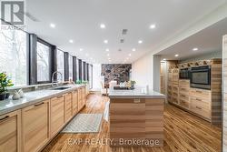 Welcome to 6165 19th Ave., Markham a truly unique country estate offering the best of both worlds: ultimate privacy and serene natural surroundings, all within minutes to modern conveniences. This warm and inviting 4-bedroom, 4-bathroom bungalow inspired by Frank Lloyd Wrights signature style is thoughtfully integrated into the landscape. Floor-to-ceiling windows along the back of the home flood the interior with natural light and provide breathtaking views of the wooded rolling lot and creek. The recently updated kitchen features poured-in-place concrete countertops and rich wood cabinetry. A built-in wall oven and a spacious walk-in pantry make it both beautiful and functional. And the kitchen boasts stunning views of the property including wildlife such as deer, foxes, turkeys, and a great heron. The great room is a showstopper, with soaring 20+ ft ceilings, exposed wooden beams and a natural granite stone wood-burning fireplace perfect for family gatherings or quiet romantic evenings in. The primary suite is a tranquil retreat, complete with a steam feature and jetted soaking tub in the ensuite and a wood burning fireplace. The home is fully wired with CAT-5 making it ideal for modern living. With two wood-burning fireplaces and an additional gas fireplace, warmth and comfort are never far away. Outside, the detached three-car garage with workshop and loft is a dream for hobbyists or those seeking extra space. With utilities already in place, the loft offers untapped potential and can be transformed into a games room, home office, or garden suite. The oversized patio and deck are perfect for entertaining including summer nights around the built-in gas firepit. Natural gas service, a rare feature for a country property, adds value and efficiency. Whether you're seeking a forever family home or a weekend escape, this one-of-a-kind property delivers charm, character, and lifestyle. Dont miss your chance to own this exceptional gem in Markham's countryside. (id:27)