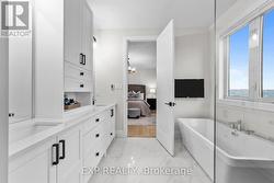 119 Daventry Way is a remarkably versatile six bedroom home set on a premium elevated walkout lot, offering an ideal layout for large families, multi generational living, or strong rental potential. The main floor features soaring 10 foot ceilings, upgraded 8 foot doors, a separate dining room, a front office that can function as a seventh bedroom, and a kitchen with stone countertops, floor to ceiling cabinetry, and a waterfall edge island that overlooks the open concept living area. In 2024, the living room was enhanced with custom built in cabinetry and shelving, and a functional mudroom with main floor laundry provides direct access to the two car garage. The upper level continues with 9 foot ceilings and 8 foot doors and offers four spacious bedrooms and three full bathrooms, including a luxurious primary suite with a five piece ensuite, a second bedroom with its own private three piece ensuite, and two additional bedrooms connected by a well appointed Jack and Jill bathroom with a double vanity. All above grade bathrooms feature heated flooring. The professionally finished walkout basement, completed in 2024, provides a complete secondary living space with 9 foot ceilings, a full kitchen with stone counters and a full set of appliances, dedicated laundry, an open concept living area, and two additional bedrooms. This level was constructed with enhanced soundproofing and R20 and R12 insulation for improved comfort and efficiency. Exterior improvements completed in 2025 include a new stairwell to the basement and a concrete side path that provides direct access to the separate walkout entrance, making it well suited for rental use or extended family living. The neighbourhood continues to grow with a new Catholic school planned for 2027 and future nearby retail additions including No Frills and Shoppers Drug Mart, adding long term convenience to an already exceptional property. (id:27)