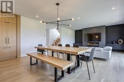 Located in the Pointe neighbourhood of Edgewater Estates. This modern 4-bedroom home is close to walking trails, parks, plenty of amenities just a few minutes from London. The main living space provides oversized European windows looking out at nature. The kitchen has plenty of storage with floor to ceiling custom cabinetry, built-in Fisher Paykel & Miele appliances, a large island with waterfall quartz countertops. A hidden cabinet door leads to a well-planned mudroom with ample cabinets for well planned organization. The open concept living room has a contemporary fireplace wall with built-in media cabinets and plenty of room to entertain. The main floor also offers a office or flex space at the front of the house. Upstairs has 4 large bedrooms, a laundry room, and 7" engineered hardwood floors throughout. The Primary suite includes a 12x8ft walk-in closet with built-in pullout drawers & a barn door. The spacious ensuite features a huge glass shower, a double floating vanity and freestanding soaker tub. This beautiful home is only 2 years old and has many upgrades and flawless workmanship. (id:27)
