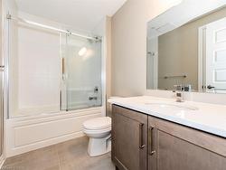 Discover this stunning, upgraded “Harrison” model in the highly sought-after Hawthorne South Village Residences by Mattamy. This bright and open 2-bedroom, 2-bath condo offers modern style, quality finishes, and serene Northwest views of the Escarpment and pond. Featuring 9-ft ceilings, pot lights, laminate flooring, and large windows that flood the space with natural light. The contemporary kitchen shines with stainless steel appliances, quartz countertops and backsplash, under-cabinet lighting, and a convenient breakfast bar. The spacious primary bedroom includes a walk-in closet and a beautifully upgraded 3-pc ensuite with glass walk-in shower. A generous second bedroom with double closet offers excellent versatility. Enjoy your morning coffee or evening unwind on the private balcony, accessed through elegant French doors. Additional perks include in-suite laundry, 1 underground parking space (P1-#20), 1 locker (P1-#291), and high-speed internet included. Conveniently located in close proximity to top-rated schools, shopping, Milton District Hospital and historic Downtown Milton ~ don't miss your chance to get into home ownership or expand your real estate portfolio!
