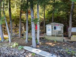 Escape to the highly desirable shores of Canning Lake with this beautifully maintained 3-bedroom, 2-bathroom year-round home, perfectly positioned to enjoy breathtaking western exposure and unforgettable sunsets. Located on Haliburton's coveted 5-lake chain, you can boat to Bonnieview for waterfront dining or cruise directly into the Village of Haliburton for shopping, dining, and amenities. Built in 2013, this thoughtfully designed home welcomes you with an open-concept kitchen, living, and dining area highlighted by vaulted ceilings, warm wood finishes, a cozy propane fireplace, and expansive windows that frame stunning lake views. Step out from the main living space onto the lakeside deck overlooking professionally landscaped gardens, natural rock walls, and winding pathways that blend beautifully with the surrounding landscape. The main level features two bedrooms, including a spacious primary, along with a well-appointed 3-piece bath conveniently situated between them. The fully finished lower level extends your living space with a generous rec room, third bedroom, and 2-piece bath-ideal for hosting family and guests. Designed for comfort and peace of mind, the home is equipped with a propane fireplace, UV water system, 200-amp electrical service, and a generator. Outdoors, the property truly shines. A charming bunkie sits right at the water's edge, complemented by a large lakeside sitting area, updated dock, and firepit for evenings under the stars. A short pathway leads to a screened-in lakeside room-your perfect retreat for quiet mornings, afternoon naps, and spectacular sunset views. Centrally located just 10 minutes to Minden, 15 minutes to Haliburton, and approximately 2.5 hours from the GTA, this exceptional property offers the perfect balance of year-round comfort, natural beauty, and convenient access to everything the Haliburton Highlands has to offer. (id:27)
