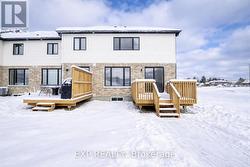 Welcome to The Town Collection at Maitland Meadows - The Homestead model is where modern farmhouse charm meets calm, connected living. This bright end unit offers 1,810 sq ft of thoughtfully designed space, filled with natural light and upscale finishes. With 9' ceilings and an open concept layout, the main floor feels airy and inviting - from the flexible front room (perfect for a home office or playroom) to the kitchen's quartz island that anchors the dining and living areas. Upstairs, the spacious primary suite features a walk-in closet and private ensuite, while two additional bedrooms and second floor laundry make family life effortless. Energy efficient construction helps keep costs low and comfort high, and the full basement offers room to grow. Complete with a deck, appliances, and stylish finishes, this home is move-in ready, and if you're looking for that attached garage feature, it's here too! Designed for those who love the modern conveniences of new construction and the peaceful rhythm of small town life. For a full list of features and inclusions visit our Model Home located at 122 Bean Street in Harriston. (id:27)