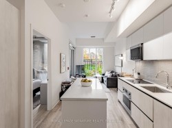 Live in the heart of Port Credit at Edenshaw's TANU Condos. This modern 1-bedroom + enclosed den suite (688 sq. ft.) offers exceptional flexibility-ideal for first-time buyers, remote workers, downsizers, or investors. The den features sliding doors and can comfortably be used as a second bedroom or home office (see floor plan). Exclusive 11-ft ceilings (ground-floor only) and large windows create a bright, open feel. The sleek kitchen includes integrated appliances, modern cabinetry, and a functional open-concept layout. Enjoy smart-home technology, keyless entry, and premium amenities including a party room, media room, fitness centre, co-working space, pet spa and more. Rogers cable and unlimited internet included in condo fees. Unbeatable location just steps to Port Credit GO, minutes to the QEW, Port Credit Marina, waterfront trails, restaurants, cafés, and boutique shops. A smart layout, strong rental appeal, and a walkable lakeside lifestyle, this is Port Credit condo living at its best.