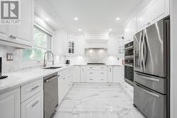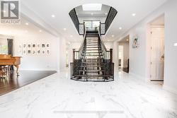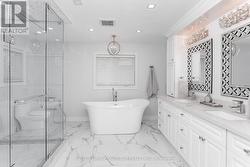 Welcome to this contemporary interior designed home in Lorne Park. The moment you enter, the spectacular open staircase allows natural light to flow through the space, creating a light and bright, sleek, minimalist aesthetic. Take in the soaring ceiling height, central skylight, porcelain tile floors, gleaming dark hardwood and pot lights throughout this meticulously designed home. Rarely available 3 car garage, with circular drive parking for 4 cars, located on a mature treed lot with Magnolia, cherry and plumb trees, literally just steps to Lorne Park Public and Secondary schools. The stunning gourmet kitchen is equipped with Jennair appliances, quartz countertops & centre island overlooking the backyard with sliding doors opening to deck for alfresco dining and grilling. The dining room is connected to the kitchen for everyday convenience or kept for formal occasions & family room is open to the kitchen with gas fireplace & display cabinetry. A formal living room, large enough for a grand piano, is perfect for entertaining. There is a 2-pc powder room for guests as well as a main floor laundry which doubles as a mud room with access into the house from the garage with EV charger, plenty of storage for busy families. Here you will find a separate entrance and back staircase down to the basement apartment with 2nd kitchen, 2 bedrooms & 3 pc bathroom perfect for a nanny suite, teenagers or multi generational families. Upstairs, the primary bedroom has a double door entry, a large walk-in closet & a spa-like ensuite retreat, complete with an oversized shower with multiple jets & shower heads, free standing soaker tub, a double sink vanity with plenty of storage, as well as a built-in display cabinet. The entire upper level has the same gleaming hardwood throughout. No fighting over who gets which bedroom in this house all are similar size, have ensuites & walk-in closets. Do not miss this opportunity! Easy access to QEW & GO. (id:27)