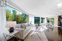 Grandly renovated 4-bedroom detached home with walkout basement on a rare 75 x 229 ravine lot in Mississaugas prestigious Credit Woodlands, featuring a saltwater pool, pond, and gazebo backing directly onto the Credit River. This luxury family home is within walking distance to 222-acre Erindale Park and the scenic Culham Trail, minutes from Mississauga Golf and Country Club, and offers quick access to major highways and GO Transit for easy commuting to Toronto and Hamilton. A mature, tree-lined street leads to a deep double driveway accommodating 8 cars plus a 2-car garage. An interlocking stone walkway and covered front veranda overlook perennial gardens with sprinkler system. The backyard is a private oasis with a massive deck, covered terrace, terraced gardens, custom saltwater pool with waterfall, serene pond with sheer descent waterfall, private gazebo, and expansive green space framed by ravine views. Recent upgrades include freshly painted interior, deck and gazebo, new furnace, air conditioner, pool heater and cover, some updated main floor windows and new backyard fencing (2025), plus a newer roof. Inside, hardwood flooring, crown mouldings, pot lighting, upgraded trims, two fireplaces, and three walkouts enhance sophistication. The skylit oak staircase opens to elegant living and dining rooms, a family room with fireplace, and a chefs kitchen with custom cabinetry, stone counters, stainless steel appliances, large island, and oversized breakfast room with walkout to deck. Upstairs, a sitting room, 2 bathrooms, and 4 spacious bedrooms are available, including a refined primary suite with a spa-like 5-piece ensuite featuring a claw-foot tub and a glass shower. The finished walkout lower level includes a recreation room with fireplace, coffered ceiling and built-ins, media/entertainment area, modern 3-piece bath, and 2 walkouts to the terrace overlooking the Credit River ravine. (id:27)