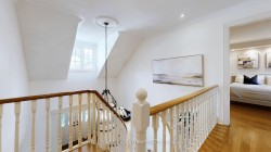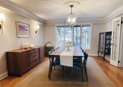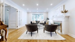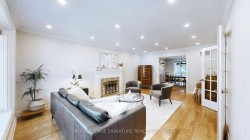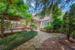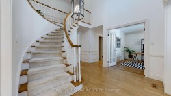 Welcome to 4086 Summit Court, an exquisite residence nestled in Mississauga's prestigious Bridlepath Estates. With over 4500 sq. ft. of meticulously designed living space, this executive home boasts a stately but warm presence. The striking front entrance features beautiful custom moulding and an elegant chandelier, flooded by sunlight. The expansive family room, complete with a cozy fireplace and custom built-in wall unit, provides an inviting space for relaxation. The main floor includes a bright and spacious home office with French doors. The large, updated kitchen offers quartz countertops, gas stove, custom built-in refrigerator, and eat-in area that overlooks the beautiful backyard deck, ideal for indoor-outdoor entertaining. The mudroom/laundry room provides additional functionality for everyday living. The upper level hosts four generously sized bedrooms, each with well-appointed closets. The luxurious primary suite is a true retreat, featuring an elegant ensuite with sleek finishes, a stylish vanity room with built-in counter and sink, a glass-enclosed shower, and a deep soaking tub. Dual walk-in closets provide ample storage. The spacious basement extends the living space, offering a versatile recreation room used as a gym, extra office working space, and an updated bathroom with shower. The meticulously landscaped backyard is a private zen-inspired oasis, complete with a large deck, a flowing artificial pond, and a charming pergola. Enveloped by mature trees for ultimate privacy, this space is perfect for outdoor entertaining. Brand new roof was installed in October 2025. Located minutes from the University of Toronto Mississauga campus, GO Transit, and Credit River Parkland, this exceptional home combines elegance, comfort, and convenience. With ample parking for up to 6 cars and no sidewalk, this rare offering is perfect for those seeking are fined lifestyle in a tranquil setting. Don't miss the opportunity to make this extraordinary property your own!