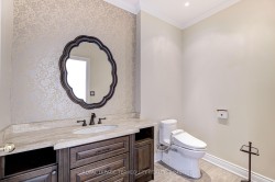 Welcome to this stunning property located in the highly demanded community of Lorne Park. Boasting terrific curb appeal, this home sits on a beautifully landscaped, double-door entry opens into a formal living room with high ceilings, creating a sense of openness and grandeur. The gracious dining room is enhanced by elegant pillars, a coffered ceiling, and detailed crown moulding. The home features an upgraded kitchen, complete with a center island, granite countertops, a gas fireplace, and built-in wine and book shelves. The interiors are richly appointed with maple and oak throughout, adding a touch of warmth and sophistication. The luxurious primary Ensuite offers a separate sitting or exercise area, an ensuite bathroom with granite floors, and additional space for a media or study room. finished basement which elevates this home further with high ceilings, anadditional bedroom, a modern bathroom, and open-concept living areas, includinga wet bar, The private backyard oasis offers meticulous landscaping boasting stoneinterlocking and custom gazebo, Within walking distance to the No pets No smoking vibrant Port Credit Village, this home offers a blend of luxury, making it a perfect choice for those seeking an upscale living experience in a vibrant community and also offering proximity to top-rated schools, parks. No pets No smoking