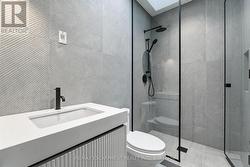 A brand-new custom home by Montbeck Developments, 957 Halliday, is just steps to Toronto French School. This home exemplifies contemporary luxury and superior craftsmanship in a quiet, tree-lined neighbourhood. This modern residence boasts soaring ceilings, white oak hardwood flooring, and Montbeck's signature design details throughout. The open-concept main floor showcases a stunning designer kitchen with quartz countertops, a 9-foot waterfall island, and a premium built-in appliance package. Expansive floor-to-ceiling windows flood the living and dining areas with natural light, leading to a covered deck ideal for year-round entertaining. Upstairs, the elegant primary suite features oversized windows, a walk-in closet with illuminated custom storage, and a spa-inspired ensuite complete with a deep soaker tub and heated flooring. Three additional bedrooms, a main bathroom, a Jack and Jill ensuite, and a full laundry room complete the upper level with both comfort and functionality. The fully finished lower level offers in-law suite potential, with a spacious bedroom, stylish three-piece bath, wet bar, and open-concept family room with a walkout to a private patio and fenced backyard. Additional highlights include a versatile media room or gym, integrated ceiling speakers for immersive audio, and an attached garage with a sleek, black-tinted glass door. Perfectly positioned near top-rated schools, scenic parks, boutique shopping, and convenient transit, 957 Halliday combines luxury, versatility, and location - the ultimate home for modern family living. (id:27)