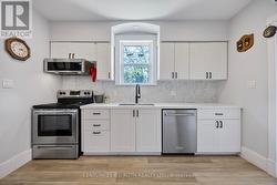 Welcome to this stunningly renovated 3-bedroom, 1.5-bath home where timeless character meets contemporary style. Perfectly located just minutes from shopping, dining, and with quick access to Hwy 400, this property is an ideal fit for families and commuters alike. Step through the bright, insulated, and heated mudroom that doubles as a convenient main-floor laundry area-complete with a brand-new washer and dryer. The carpet-free main level showcases a spacious, open layout featuring a stylish kitchen with quartz countertops, a modern backsplash, and plenty of cabinetry. Relax by the cozy gas fireplace in the inviting living room, or gather with loved ones in the generous dining area designed for effortless entertaining.Upstairs, discover two comfortable bedrooms plus a versatile third room-perfect for a nursery, home office, or creative space. The beautifully updated 4-piece bathroom offers a touch of spa-like luxury.The unfinished basement provides abundant storage options, including a cold cellar. Outside, the large detached garage with dual doors is ideal for a mechanic, hobbyist, or anyone in need of extra workspace or storage. (id:27)
