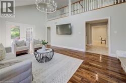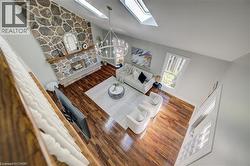 Welcome to serenity!! This stunning home is situated in a beautiful and QUIET neighbourhood with mature trees, yet only minutes to major hwys! Gorgeous fireplace with stone feature sets the tone for this lovey home creating a welcoming atmosphere. Professional upgrades include a Kitchen a chef would love! Stunning cabinetry, pot lighting, quartz countertop, island & stainless steel appliances. Main level primary bedroom with walk-in closet and fully updated bath. The view from the upper level looking over the living room is breathtaking!! An additional added feature, is the open upper hall (could be used as home office). Wood floors, freshly painted and ready for YOU! Enjoy this summer is a VERY large fully fenced yard where you can enjoy some family time! (id:27)