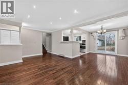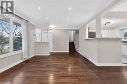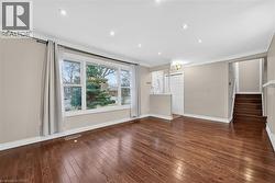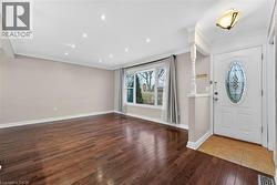 Fully finished, 4 level side split, located in family friendly neighborhood. Step inside and you will appreciate the open concept main level with gleaming hardwood floors and plaster coved ceiling detail. Bright, spacious living room features over sized windows and pot lights. Patio door access from dining room to huge back yard. Modern, updated kitchen with white cabinetry, under mount sink and mosaic tile backsplash. Upper level offers 3 spacious bedrooms with dark stained hardwood floors. Tastefully updated main bathroom with white vanity, tiled floor and shower. Bring the in-laws! Separate rear entrance to family room level and basement level. Unlimited potential with a second kitchen and 1.5 bathrooms. Ideal location for commuters with easy highway access. Don't miss out. (id:27)
