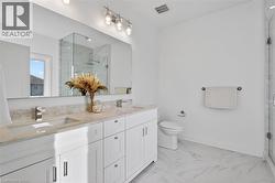 Fully finished 4-bed, 3-bath home in the desirable Forestview Estates subdivision of Niagara Falls. Modern open-concept main floor with stylish kitchen, large island and bright living space with oversized windows. Upper level offers 4 spacious bedrooms including a master bedroom with walk-in closet and ensuite, plus second-floor laundry. Separate side entrance to the full unfinished basement provides excellent potential for an in-law suite or rental unit. Rough-ins in place and layout supports flexible future design. Family-friendly location surrounded by new homes, parks, schools and trails. Minutes to Costco, shopping, restaurants, the future South Niagara Hospital, QEW, golf and Niagara Falls attractions. Move-in ready with opportunity to add value by finishing the basement to your preference. (id:27)
