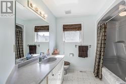 Nestled among the vineyards between the Niagara River and the southern shores of Lake Ontario, you'll find the Village of Virgil in charming Niagara-on-the-Lake. Set on a quiet cul-de-sac lined with mature trees and gardens, this beautifully maintained 2,051-square-foot traditional home offers an ideal family-friendly setting. A triple-wide concrete driveway and 20 x 20 attached double garage provide excellent curb appeal and convenience.A cozy front porch overlooks the circular court and welcomes you into a proper foyer. Double French doors open to a bright living room with a large bay window, flowing seamlessly into the formal dining room. The oak kitchen extends into a breakfast nook and sunken family room, complete with a gas fireplace and serene green views of the backyard.The main level also features a 2-piece bath, a back hallway with laundry, and direct access to the garage. Upstairs, two bedrooms and a 4-piece main bath occupy one wing, while the other is dedicated to a spacious primary retreat with walk-in closet and a 4-piece ensuite featuring a soaker tub.The fully finished lower level offers exceptional versatility with a living area, recreation room, bar, 3-piece bath, ample storage, and utility space. Step outside to the 20 x 15 deck overlooking the private yard, framed by mature trees and complete with a 10 x 12 shed with hydro.A peaceful retreat just minutes from Old Town Niagara-on-the-Lake, St. Catharines, and Niagara Falls - this is the lifestyle you deserve. (id:27)