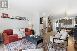 Rarely offered 3 BEDROOM UPPER END UNIT! This tastefully updated 3 bedroom, 2 bathroom unit in the heart of Kemptville is sure to please! Flooded with natural light, the main level boasts an open concept floor plan, upgraded lighting and 9 foot ceilings. The functional kitchen offers stainless steel appliances, sleek backsplash and a peninsula with overhang for added seating. Enjoy summer days lounging on the private, sunny balcony. The bonus main level den with cozy vibes is perfect for working from home, using as a lounge/TV area (as it's set up now), or sending the kids to play! Upstairs, the primary bedroom features double closets as well as access to an additional second-level balcony. Two great sized bedrooms, a linen closet, stacked laundry and a full bathroom complete this level. Upgraded smooth ceilings on the main level + primary bedroom as well as designer paint choices throughout give this unit a crisp, clean finish. Parking is conveniently located directly in front of the unit's entrance. You're a quick 5-minute drive to anything you could possibly need: groceries, restaurants, shops, and more! Or, walk to downtown Kemptville in less than 20 mins where you'll find the library, bakery, pizza shop, clothing boutique, etc. etc.! Condo fees include water. Book a showing today! (id:27)