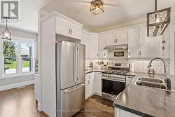 Discover incredible value in this thoughtfully updated home, where timeless style meets the character and warmth of a century home - perfectly situated in a central location! Step inside this beautifully refreshed home and you'll instantly notice the perfect blend of character and style. From the white shaker kitchen cabinets with stainless steel appliances, gas range, and breakfast bar, to the large living area filled with natural light, every corner feels warm and inviting.Throughout the home, you'll find thoughtful updates like luxury vinyl plank flooring, newer windows, stylish light fixtures, and wrought iron spindles, all while preserving original details like the oversized baseboards, grates, exposed brick, and gorgeous woodwork throughout. Need flexibility? The main floor offers a versatile space that can be a formal dining room or a spacious main floor bedroom - your choice! Plus, with newer siding, all updated appliances (including washer and dryer), and a deceivingly spacious lot surrounded by mature trees, this home is truly move-in ready. Enjoy summer BBQs on the side deck, morning coffee on the covered front porch or second level, private balcony and the peace of mind that comes with a lovingly maintained property. Located just steps from Our Lady of Mount Carmel Catholic Elementary School, complete with a full playground, baseball diamond, and plenty of green space. You're also perfectly situated only 15 minutes to the beautiful beaches of Grand Bend and 15 minutes to the charming community of Exeter.This is small-town living with style, space, and soul. Don't miss it! Home Tour Here:https://youtu.be/obOdC_asdhc (id:27)