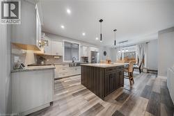 Welcome to this stunning custom-built bungalow, perfectly tucked away on a quiet dead-end cul-de-sac in the charming town of Norwich. Thoughtfully designed with both style and functionality in mind, this home offers a bright, modern atmosphere and is truly move-in ready. The open-concept main floor seamlessly connects the living, dining, and kitchen areas, creating an ideal space for everyday living and entertaining. The living room is highlighted by recessed pot lighting, adding warmth and architectural interest. At the heart of the home, the chef-inspired kitchen impresses with abundant counter and cupboard space, a stylish tile backsplash, stainless steel appliances, and a large extended island with additional seating. A walk-in pantry offers exceptional storage, and the dining area seamlessly extends to the backyard, creating an effortless indoor-outdoor living experience. The main-floor primary suite is a private retreat overlooking the backyard oasis. It features a spacious walk-in closet and a spa-like ensuite complete with dual sinks, a walk-in shower, and a standalone soaking tub. Two additional well-appointed bedrooms and a full four-piece bathroom complete the main level. Downstairs, the fully finished lower level expands your living space with a large recreation room with a modern electric fireplace and a stylish bar area, perfect for relaxing or hosting guests. This level also offers an additional bedroom, a fully equipped home gym, and a modern three-piece bathroom. Outside, unwind on the covered patio and enjoy your private backyard oasis, complete with an inground pool—an ideal setting for summer entertaining or peaceful evenings at home. Additional features such as a tankless water heater, keyless door entry, and a doorbell camera add comfort, efficiency, and peace of mind to this exceptional property. Refined living awaits in this beautiful property, where luxury, practicality, and an exceptional location come together seamlessly. (id:27)