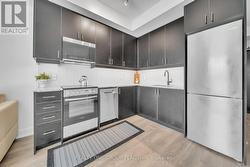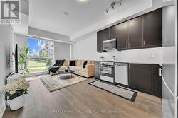 THIS MUST SELL. PRICED TO SELL QUICK!! Welcome To Nuvo Condominiums - Resort Like Living in Oakville! Almost Brand New - Jan 2025 built, Ground-Floor 1 Bedroom + Den, 2 Full Bathroom Suite Offers an Exceptional Blend of Modern Design and Everyday Convenience. The Thoughtfully Designed Layout Features Approx. 600 sqft Of Living Space - A Bright Primary Bedroom, A Spacious Den That Easily Functions as a Second Bedroom or Home Office, And Two Stylish Full Bathrooms. With Direct Outdoor Access from the Ground Floor, There's No Need to Wait for the Elevators, Perfect for Pet Owners, Young Families, Or Anyone Who Values Accessibility. The Condo Is Loaded with Upgrades, Including 9ft Ceiling, Keyless front door entry with smartphone, Ecobee Smart Thermostat with built-in Alexa, Remote-Controlled Window Blinds, Matte black metal hardware on all interior and suite entry door, Undermount stainless steel sink with matte black single lever faucet with pull out vegetable sprayer, Gas connection for BBQ and one water/hose bib, Contemporary Finishes, And High-Quality Furnishings, Making It Truly Move-In Ready. Enjoy Tranquil Golf Course and Garden Views, A Prime Location Right Beside the Gym (with Peloton Bikes, weights and other machines), And Access to Resort-Style Amenities Such as an Outdoor Swimming Pool, Sauna, Rooftop Lounge, Spa, And Pet Wash Station. Ideally Situated Minutes from Oakville Trafalgar Memorial Hospital, Close to Major Highways (403/407/QEW), And Just a Short Drive to Burlington, Milton, And Mississauga. Surrounded By Parks, Trails, Shopping, Dining, Banks, all Amenities, And Top-Rated Schools, This Unit Offers Luxury Living in a Vibrant Community. Includes 1 Underground Parking Space and a Locker. Some Benefits of the Main Floor Unit - 1. No Stairs / Step-Free Living, 2. Easier Access, 3. Outdoor Access (Often), 4. Emergency Evacuation Ease, 5. Better for Moving In & Out. Taxes Not Yet Assessed. Maint. Fee covers all Amenities, Heat, Parking, Locker & Wifi. (id:27)