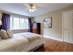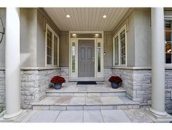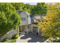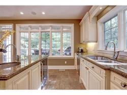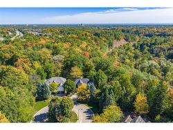 Architectural Masterpiece in Oakville - Muskoka Living on the Ravine! Welcome to the exclusive enclave of Riverbank Way, where bespoke homes overlook lush wooded ravines & back onto Sixteen Mile Creek Conservation. At the very end of this quiet cul-de-sac, the trail ends & tranquil home life begins. This custom-built 6,160 sq. ft. residence blends elegance, functionality & luxury. Sun-filled interiors are framed by picturesque forest views through expansive custom windows w/transoms. Grand living room w/soaring 16' high open-beam ceilings & gas FP forms the heart of this home. Entertain in the dining room designed for 12 guests. Enjoy Downsview kitchen featuring granite counters, marble backsplash, centre island w/2nd sink w/filtered water, gas stove, LED pot lights, B/I speakers & walk-in pantry. The breakfast room opens to a composite deck with glass railings, perfect for morning coffee, or glass of wine. The main floor primary suite boasts 10' high vaulted ceilings, FP, W/O to the deck, W/I closet & spa-inspired bath w/5-jet Jacuzzi, separate shower & stained-glass window. Convenient main floor laundry, inside garage entry & private staircase 2 LL complete this floor. Upstairs are 2 spacious bedrooms & a skylit bath. The walk-out lower level offers a separate entrance, billiards room, media room, office, 4th bedroom, large family room ideal for entertaining or multi-generational living. Granite rocks, multitier patios, lawn, stone benches in the amazing backyard. Dutch clean home. Updates: roof shingles (2018), 2nd floor hardwood (2018), finished lower-level rms (2018), furnace & AC (2023), epoxy garage flrs (2023).Lifestyle perks: miles of interconnected trails@ the doorstep, nearby Lions Valley with red cliffs, hospital, Health Science Village, new Regional Courthouse, 16 Mile Sports Complex, library, community centre, shopping, dining access Hwy 407, QEW&GO Train. The epitome of sophistication & elegance, set in Oakville's most breathtaking natural landscape.