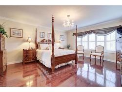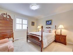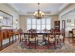 Fantastic 4 bedroom home featuring over 3100 square feet nestled on a 69 by 117 foot pie shaped lot and located in the exclusive area of Joshua Creek. Spacious living/dining room area with hardwood floors and coffered ceiling. Large family size kitchen with granite countertops, stainless steel appliances with Jennair gas stove, breakfast bar, pot lighting, ceramic floors, and stone backsplash. Gorgeous family room with hardwood floors, gas fireplace with custom cabinetry and mantle. Fantastic layout with 9 foot ceilings on the main level, freshly painted throughout (2024), convenient main floor office with coffered ceilings, 2 piece powder room with pedestal sink, main floor laundry with front load washer/dryer, California shutters and crown moulding on the main and upper levels. Primary bedroom retreat his/her walk-in closets, 5 piece en-suite with oval tub and walk-in shower with rain shower head. Upper level sitting area, updated main 4 piece bathroom with porcelain floors and soaker tub. Great curb appeal with double door entry with beveled glass, stone/brick exterior, stone driveway, walkway and front patio area. Backyard oasis with walk-out to custom composite decking with glass panels (2024), flagstone walkway leading from side yard, gorgeous landscaped gardens, and garden shed. Premium location close to schools, parks, trails, golf, transit, and highways. Fridge (2024), stove, dishwasher (2024), washer, dryer, central vacuum with attachments (not carpet), 2 garage door openers, garden shed, all light fixtures, and all window coverings.
