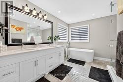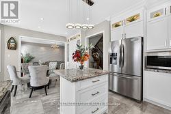Offering Nearly 4,000 sq ft ( 5 washroom layout)of beautifully finished living space, thiss tunning Greenpark MONTANA Model (2,956 sq ft above grade as per builder) is located on aquiet, family-friendly street in one of Oakville's most desirable communities, just minutesfrom the new Oakville Hospital and surrounded by scenic trails and green space. This extensively renovated home (over $300K spent) features 9-ft ceilings, 8-ft custom doors, smooth ceilings on the main level. Elegant hardwood spiral staircase with wrought iron pickets, hardwood flooring, California shutters, gas fireplace, pot lights, and modern light fixtures throughout. This exclusive 5-washroom layout( 3 full on 2nd floor) model sits on a quietstreet. Upgraded kitchen showcasing extended tall white cabinetry, granite countertops, backsplash, central island, and stainless steel appliances, a very convenient office andlaundry on the main level. A perfect luxurious model home for family breakfasts, entertainment,or perfect for evening parties. The main floor is adorned with premium 24x24 porcelain tiles, adding to the luxurious feel. Upstairs, you'll find four spacious bedrooms, three full bathrooms on the second level, and a versatile additional sitting area or den ideal for a homeoffice, kids' play area, or relaxing space. A fully finished walk-out basement with kitchen and3-pc washroom along with electric fireplace. Major updates include a new hot water tank (owned,2024), furnace and central A/C (2021), and roof (2020). This thoughtfully upgraded and distinctlayout is designed for modern family living. This move-in-ready home is a rare find in apremium Oakville location. (id:7525)
