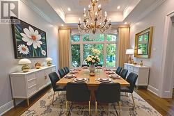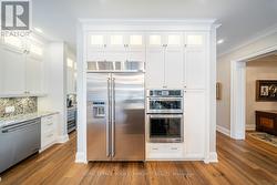Welcome to 1551 Warland Rd, a stunning custom-built bungaloft in the heart of highly sought-after South Oakville. Nestled just a 5-minute walk from Coronation Park and the serene shores of Lake Ontario, this exceptional residence offers over 5,700 square feet of meticulously finished living space, blending luxury, comfort, and modern convenience. Step inside to discover an inviting main floor where primary rooms exude elegance with coffered ceilings, expansive picture windows flooding the space with natural light, and rich hardwood flooring. The gourmet kitchen is a chefs dream, featuring top-of-the-line JennAir appliances, including dual dishwashers, a gas stove with a custom hoodfan, side-by-side fridge, built-in oven, and microwave. A butlers pantry and servery seamlessly connect the kitchen to the dining room, perfect for effortless entertaining. The bathrooms elevate luxury with quartz countertops, undermount sinks, sleek glass shower enclosures, and heated flooring for year-round comfort. The primary suite, conveniently located on the main level, offers a tranquil retreat with sophisticated finishes and ample space. Downstairs, the lower level impresses with a custom wet bar and wine room, ideal for hosting guests, alongside a dedicated exercise room for your wellness needs. Every detail has been thoughtfully designed to enhance your lifestyle. Step outside to the backyard oasis, where an outdoor patio steals the show with a custom pizza oven, built-in barbecue, and a covered area featuring a cozy fireplace perfect for al fresco dining or relaxing evenings under the stars. Located in one of Oakville's most desirable neighborhoods, this bungaloft combines timeless craftsmanship with modern amenities, all just steps from parks, lakefront trails, and the vibrant South Oakville community. (id:7525)