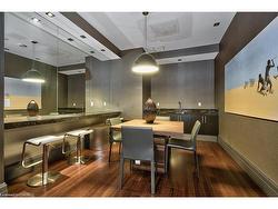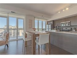 Stunning upgraded 2-bed, 2-bath model suite in Rain & Senses Condos! Offering 1,175 sq. ft., open-concept living, quartz counters, stainless steel appliances & floor-to-ceiling windows. Enjoy 2 owned parking spots & 2 lockers—a rare find! Building offers concierge, gym, sauna, rooftop terrace, party room & more. Steps to GO, Kerr Village, & downtown Oakville.