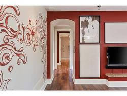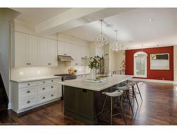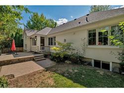 A remarkable lifestyle awaits in Oakville’s highly sought-after West Oakville community, where every convenience is just steps away. This exquisite custom raised bungaloft, redesigned in 2016 by Keeren Designs, backs directly onto the scenic Donovan Bailey Trail & is only a 3-minute walk to the Queen Elizabeth Park Community & Cultural Centre. Enjoy nearby Bronte Harbour, Lake Ontario, waterfront parks, & Bronte Village’s shops & restaurants, all just minutes away, with quick commuter access to Bronte GO Station & the QEW/403. Showcasing undeniable curb appeal, this luxury home features a stucco façade with accent shutters, stone steps leading to a covered entry with columns & iron railings, interlocking stone walkways, professional landscaping with mature trees, a 9-zone irrigation system, & exterior cameras. The private backyard retreat offers upper & lower stone patios, gardens with armour stone accents, evergreens, & direct trail access. Inside, the residence boasts 2+3 bedrooms, 2.5 bathrooms, & a versatile loft perfect as a bedroom, home office, or studio. The 2016 transformation added a gourmet kitchen, wide-plank hardwood, designer tiles, custom built-ins, deep trim, built-in speakers, & expandable Control4 smart home automation. Designed for comfort & entertaining, the open-concept main floor offers 9’ ceilings, family room with gas fireplace, spacious dining room, & chef’s kitchen with custom cabinetry, quartz counters, oversized island with seating for 6, high-end appliances, & a breakfast area with walkout to the backyard. The primary suite showcases 2 walk-in closets & a spa-inspired 4-piece ensuite with soaker tub & oversized glass shower. The finished lower level includes a large recreation room, 3 bright bedrooms, 3-piece bath with heated floor & glass shower, oversized laundry, & abundant storage. Upgrades include furnace, HRV, roof shingles (2016), & recently, some main floor windows updated, & addition of a custom 8’ solid wood front entry door.