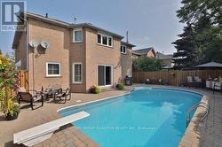 Welcome to this beautifully updated and meticulously maintained family home, ideally situated on a quiet, child-friendly street in the highly sought-after River Oaks community. Offering over 4500 sqft of total living space, this impressive 4-bedroom, 5-bathroom residence is perfectly designed for both everyday family living and entertaining. The main level features a spacious entry foyer with high end Italian tiles and hardwood flooring , traditional living and dining rooms, and an open-concept kitchen complete with a walk-in pantry, eat-in area, and walkout to a private backyard oasis. An oversized family room, home office/den, powder room, and convenient main-floor laundry with garage and exterior access complete this level. Upstairs, the exceptional primary suite boasts a walk-in closet and spa-like ensuite. Three additional generously sized bedrooms complete the second floor, including a unique fourth bedroom with its own sitting nook and 2-piece ensuite-ideal for teens or guests. The fully finished lower level offers a large recreation room, gym area, 3-piece bathroom, and ample storage. Step outside to your private backyard, no maintenance retreat featuring an inground saltwater pool with solar panel heating, interlock patio, perfect for summer entertaining. Notable updates include furnace (2009), windows (2008), California shutters, salt cell (2025), and A/C (rental, 2025). A truly exceptional home in a prime family-friendly location. (id:27)