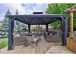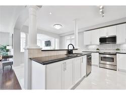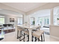 Welcome to this stunningly upgraded family home in the prestigious Bronte Creek community of Oakville. Perfectly positioned on a premium pool-sized lot on a quiet, family-friendly street this exceptional Monarch built home offers 3,812 sq. ft. of fully finished living space on three levels providing the ultimate blend of luxury, comfort, and functionality. This 4-bedroom, 3+1 bath residence has been meticulously updated inside and out. A striking exterior with fresh paint and timeless curb appeal sets the tone for elegance within. Step through the grand foyer to discover a bright, flowing open-concept layout enhanced by new porcelain tile and hardwood flooring, designer lighting, and custom wainscoting that elevate every space. The updated gourmet chef’s kitchen is a true showpiece, featuring custom cabinetry, Stainless steel premium appliances, granite counters and a large island that seamlessly connects to the cozy family room with a gas fireplace, perfect for entertaining or relaxed family living. The formal dining and living rooms exude sophistication, ideal for hosting special gatherings. The upper-level features new hardwood, a luxurious primary suite providing a serene escape with a spa-inspired 5 pc. ensuite and a generous walk-in closet. A stunning loft/office space, three spacious bedrooms, a main bath and laundry room complete the upper level. The fully finished lower level adds exceptional versatility with a rec room, gym/home office space, an updated 3-piece bath and ample storage ideal for growing families. Step outside to your own private haven, an entertainer’s dream. The fully fenced pool-size lot showcases professionally landscaped gardens featuring mature trees, fire pit and tiered decks offering outdoor enjoyment in every season. Located minutes from highways, top-rated schools, shopping and the best of Oakville’s natural beauty, this Bronte Creek gem combines modern luxury with timeless elegance and is a rare opportunity not to be missed.