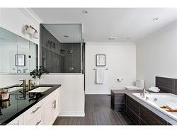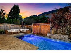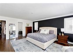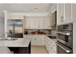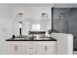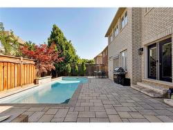 Discover luxury living in this Monarch-built executive home in Oakville’s prestigious Bronte Creek neighbourhood, just steps from trails, Colonel William Woods Park, & Bronte Creek Provincial Park—ideal for hiking, biking, & family adventures. This exceptional Bronte Creek real estate gem sits on a re-landscaped lot with a stone & stucco façade, stone tile walkways, manicured gardens, soffit lighting, & a private backyard oasis featuring a saltwater pool, sheer descent waterfall, & extensive stone patio for outdoor entertaining. Inside, over 5,000 sq. ft. of upgraded living space includes 4+1 bedrooms, 4.5 bathrooms, & a professionally finished basement (2020) with a recreation room, wet bar, glass-enclosed gym, a fifth bedroom, & a modern 3-piece bath. Elegant finishes—wide-plank hardwood floors, crown mouldings, designer tiles, custom cabinetry, custom blinds, California shutters, & stone countertops—are complemented by 9-foot ceilings & expansive windows. The main level offers formal living & dining rooms, a custom kitchen with premium appliances, a dramatic two-storey family room with fireplace, a private office, a dream laundry room & chic powder room. Upstairs features 4 spacious bedrooms & 3 spa-like bathrooms, including a primary retreat with a 5-piece ensuite boasting a lavish soaker tub & separate glass shower. Recent upgrades include 2 updated upstairs bathrooms, new second level laminate floors & baseboards, 100 new pot lights, updated fire stones in the electric fireplace, integrated wall vents, designer feature wall in the dining room, fresh paint, new door hardware, & a Tesla charger added to the garage. Located minutes from top-rated schools, shopping, restaurants, Oakville Trafalgar Hospital, & major highways, this showpiece family home in Bronte Creek offers luxurious living in a prime Oakville location.
