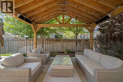 Situated on a premium corner lot in one of Oakville's most sought-after pockets, 355 Wisteria is a masterclass in transitional design and high-end functional luxury. Spanning 4+1 bedrooms and 4.5 bathrooms, every square inch of this residence has been curated for the family that refuses to compromise. Step into an airy, light-filled floor plan defined by 9' ceilings, rich hardwoods, and designer pot lighting. The dedicated main-floor office provides the ultimate work-from-home sanctuary behind closed doors. For the culinary enthusiast, the chef's kitchen is a showstopper: outfitted with a professional Wolf gas range, Miele appliances, sleek quartz counters, and custom cabinetry built-ins that flow into a sun-drenched eat-in area. The custom mud room features stunning built-ins for fantastic family storage. The upper level is an oasis of organization and comfort. The Principal Suite feels like a boutique hotel, featuring hardwood floors, walk-in closet with custom organizers and a spa-style 5-piece ensuite with a deep soaker tub, glass shower and heated towel racks. With a Jack & Jill ensuite bath for bedrooms two and three, plus a private bath for the fourth bedroom, morning rushes are a thing of the past. The 2018 basement renovation is a total game-changer. Soundproofed with Rockwool Safe'n'Sound, it features a massive recreation room, a sleek bar area, a 5th bedroom/nanny suite. The modern 4 pc bath makes living their a luxurious experience. Even the garage is future-ready with an EV charging electrical, and built-in shelving. The backyard is where 355 Wisteria truly outshines the rest. Spend your evenings under a stunning architectural pergola equipped with integrated heaters and electrical-allowing for four-season entertaining on your expansive stone patio. Turnkey, upgraded, and steps from top-tier schools, trails, and the hospital. This isn't just a home; it's the upgrade you've been waiting for. (id:27)