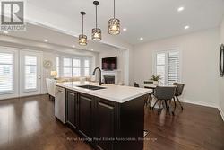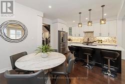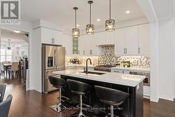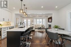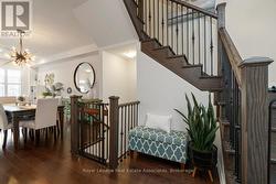 Welcome to 4061 Channing Crescent, a beautifully upgraded freehold townhouse offering 2,280 sq. ft. of living space plus an unfinished basement with endless potential. Proudly maintained by its original owners, this home is located in Oakville's sought-after Ivy Rouge community, a family-friendly neighbourhood designed to balance modern convenience with natural beauty. The main floor features a bright, open-concept kitchen, breakfast area and family room with smooth ceilings, pot lights, rich hardwood flooring and French doors leading to the backyard. The kitchen is thoughtfully designed with quartz countertops, upgraded cabinetry, premium appliances and a striking mosaic backsplash. A separate living/dining room offers additional space for formal entertaining. Upstairs, the spacious primary suite includes a spa-inspired ensuite with frameless glass shower and dual sinks, while three additional bedrooms offer flexibility for family, guests, or home office needs. Hardwood flooring continues throughout the second level, which also features a convenient upper-level laundry room. California shutters, wrought iron staircase accents and designer finishes add timeless sophistication. Beyond the home, residents enjoy access to top-rated schools, Sheridan College, community centres, libraries and abundant parks and trails including Lions Valley Park and Sixteen Mile Creek. Glen Abbey Golf Club, Oakville's waterfront and major shopping destinations are all nearby, along with diverse dining and healthcare at Oakville Trafalgar Memorial Hospital. Commuters benefit from quick access to Highways 403, 407, QEW and Oakville GO Station. (id:7525)