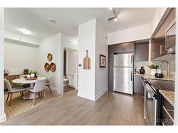 Welcome to unit 415 at 55 Speers Road — a bright, modern 1-bedroom plus den condo offering a thoughtfully designed open-concept living space plus two private balconies for added outdoor enjoyment. Perfectly located in the heart of Oakville, this home blends comfort, convenience, and style. Step inside to discover a sleek kitchen outfitted with stainless steel appliances, rich cabinetry, and granite countertops, seamlessly flowing into the living and den areas. The large living room opens onto one of two private balconies, offering the perfect spot for morning coffee or evening relaxation. The bedroom features its own private balcony, a walk-in closet, and easy access to the 4-piece bath. Additional highlights include in-suite laundry and a spacious foyer and a pet friendly building. This unit includes 1 owned parking spot and 1 owned locker. Building Amenities Include, Fully equipped fitness centre, Indoor swimming pool, hot tub, sauna, party room, dining/meeting spaces, theatre/media room, elegant lobby with concierge service, roof top patio with BBQ, visitor parking and secure bike storage. Situated just steps from the Oakville GO Station, trendy shops, dining, and waterfront parks, 55 Speers Road offers an unbeatable lifestyle. Quick highway access makes commuting effortless, whether heading into Toronto or exploring the beauty of Halton Region. Whether you're a first-time buyer, downsizer, or investor, this vibrant unit gives exceptional value and an incredible opportunity to live in one of Oakville’s most convenient communities.