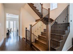 Stunning 5-Bedroom Executive Home in The Oakes over 4500 Sq Ft of finished Luxury Living space. Welcome to this exquisite Treasure Hill Baymont Five (Elevation C), family-friendly living in the heart of The Oakes, one of Oakville's most sought-after communities.Designed with function and sophistication in mind, Exterior pot lights around home, the main floor features soaring 10ft ceilings, a spacious formal living/dining area, a private den, and an open-concept kitchen with extended cabinetry, centre island, and breakfast area all overlooking the sun-filled family room with a gas fireplace and large windows.Upstairs, 9ft ceiling you'll find five generously sized bedrooms, including a luxurious primary suite with a walk-in closet and spa-like 5-piece ensuite. Bonus, garage has a rough in EV line.The second floor also includes a convenient laundry room, two shared bathrooms, and ample closet space throughout. Located near parks, top-rated schools, and all major amenities. This is your chance to own a move-in ready home in a thriving, family-focused neighbourhood. Don't miss out book your showing today